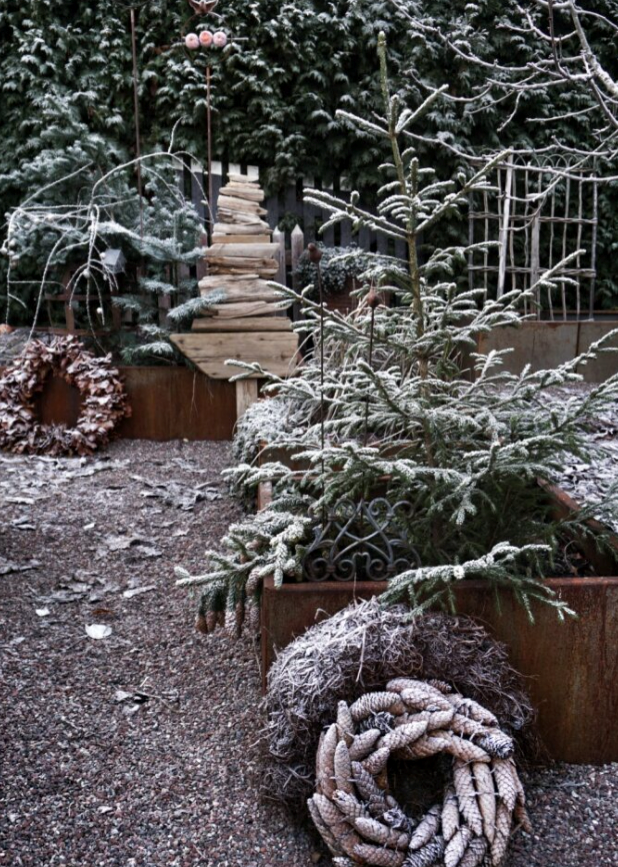 To af mine højbede er placeret på terrassen hvor man kan se dem fra huset. Det giver nogle andre muligheder her om vinteren.