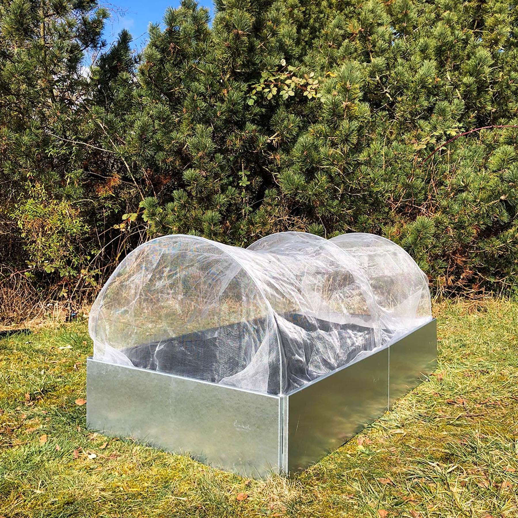 Med et flot højbed med væksttunnel beskytter du effektivt dine kålplanter mod kålsommerfuglene og deres larver, dine gulerødder mod gulerodsfluer, dine jordbær mod fuglene – og så holder nettet effektivt dræbersnegle ude.